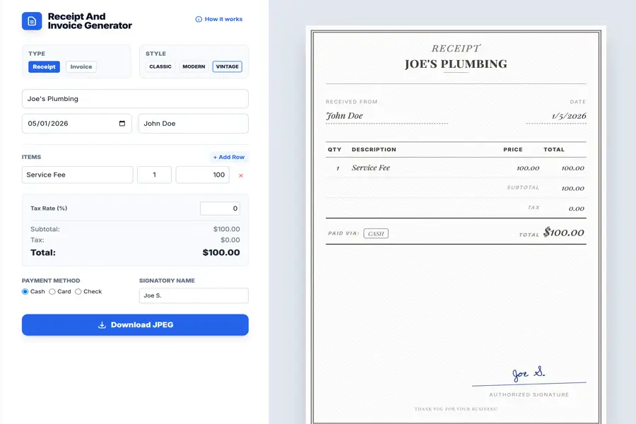 Generate professional receipts and invoices instantly without complicated software. Stay organized and look more credible with every transaction.