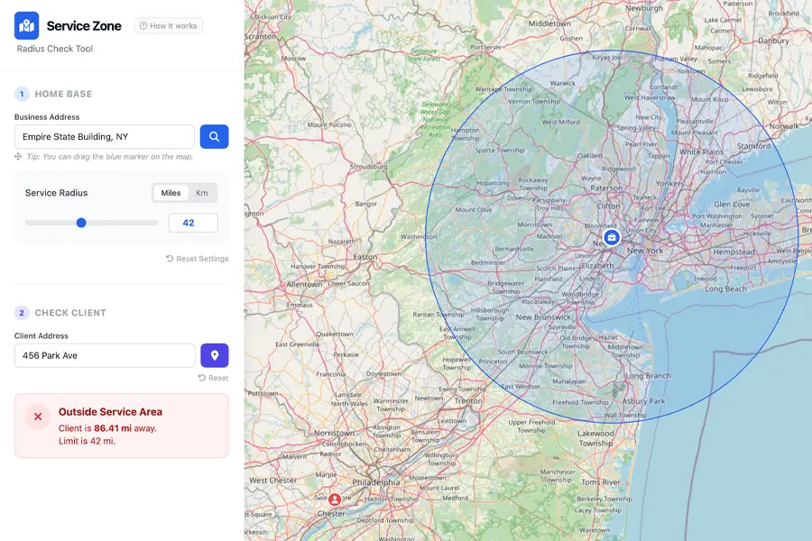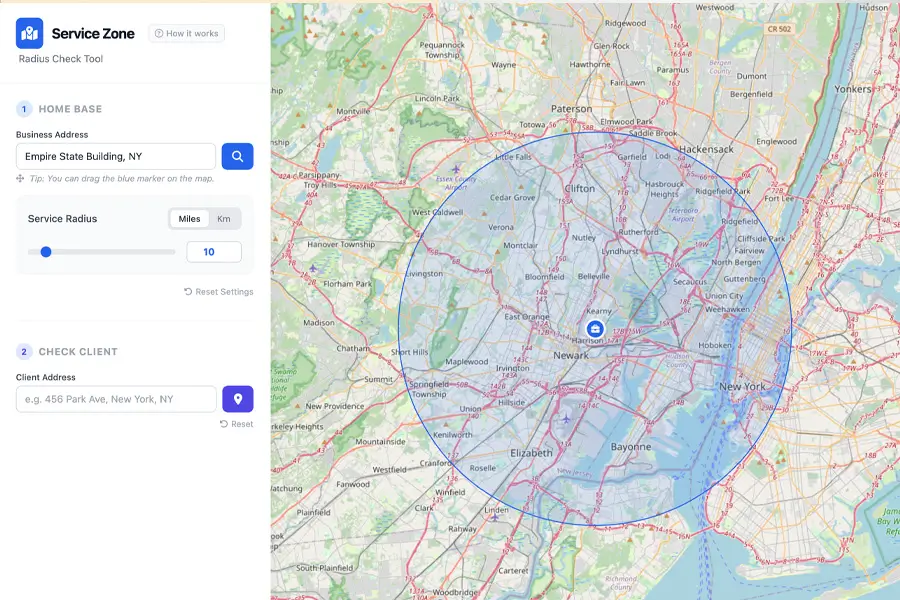 Define your service radius and instantly understand which nearby areas you should target. Ideal for contractors and service businesses planning coverage zones.